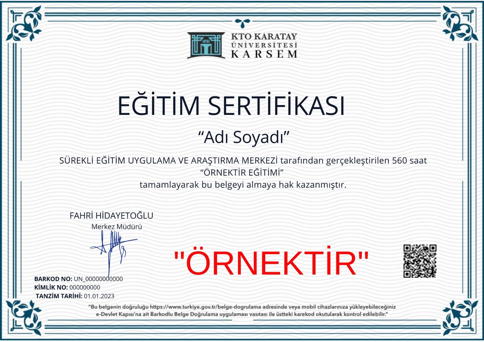 KTO KARATAY ÜNİVERSİTESİ SÜREKLİ EĞİTİM MERKEZİ MÜDÜRLÜĞÜ TARAFINDAN ONAYLANAN VE SORGULANIP GÖRÜNTÜLENEN ONAYLI SERTİFİKALAR